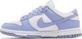 Released on July 1, 2022, the women’s Nike Dunk Low Next Nature Lilac blends classic design with sustainability, featuring 20% recycled materials. The upper pairs a white leather base with lilac overlays, Swooshes, and laces, while a perforated toe box adds breathability. Details include a purple Nike label on the white tongue, a volt insole with a black Nike pinwheel logo, and a purple heel cap embroidered with a white Nike logo. The design is finished with a white midsole and a matching purple Grind rubber outsole.